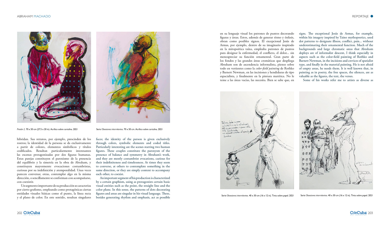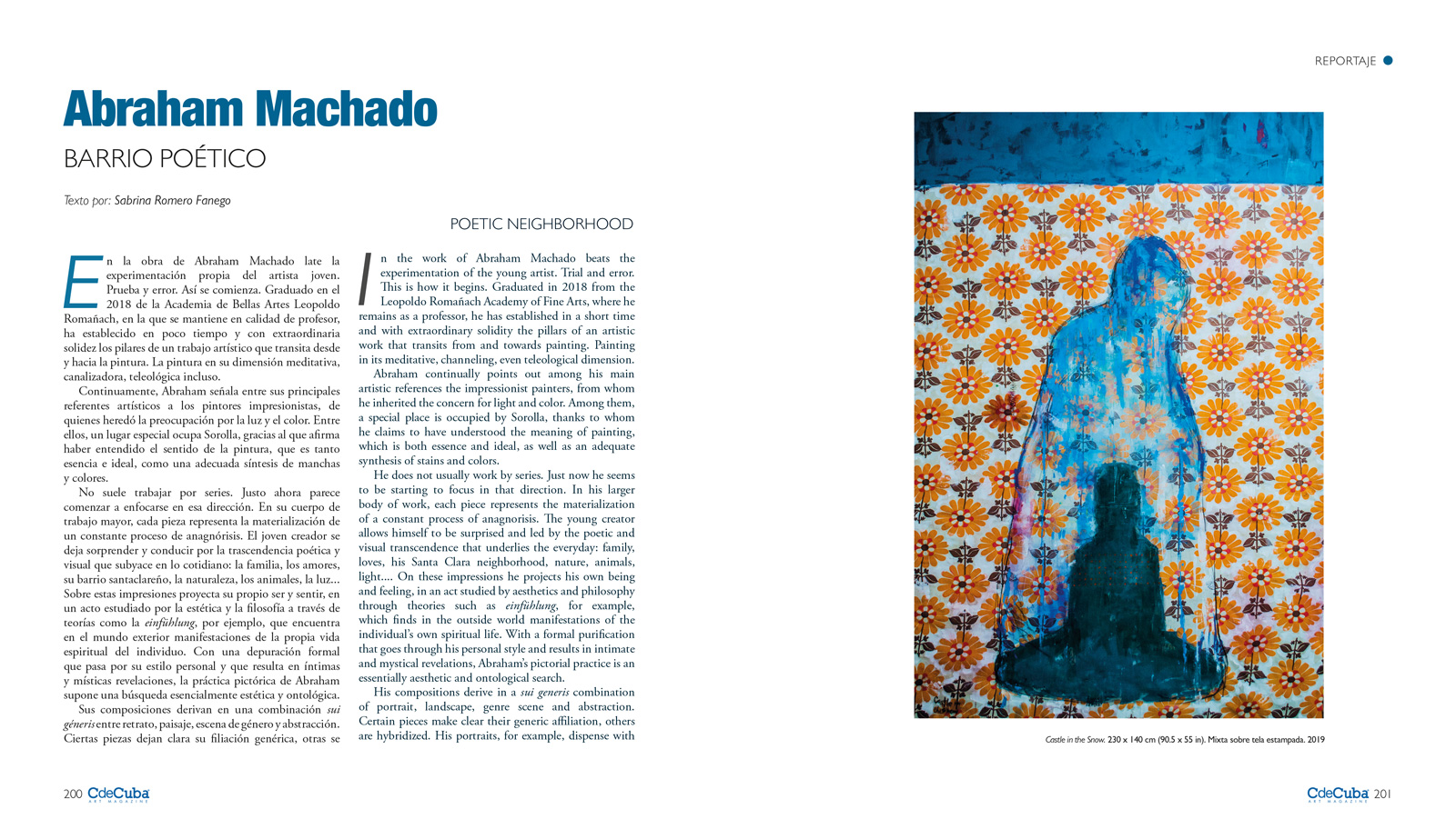 In the work of Abraham Machado beats the experimentation of the young artist. Trial and error. This is how it begins. Graduated in 2018 from the Leopoldo Romañach Academy of Fine Arts, where he remains as a professor, he has established in a short time and with extraordinary solidity the pillars of an artistic work that transits from and towards painting. Painting in its meditative, channeling, even teleological dimension.