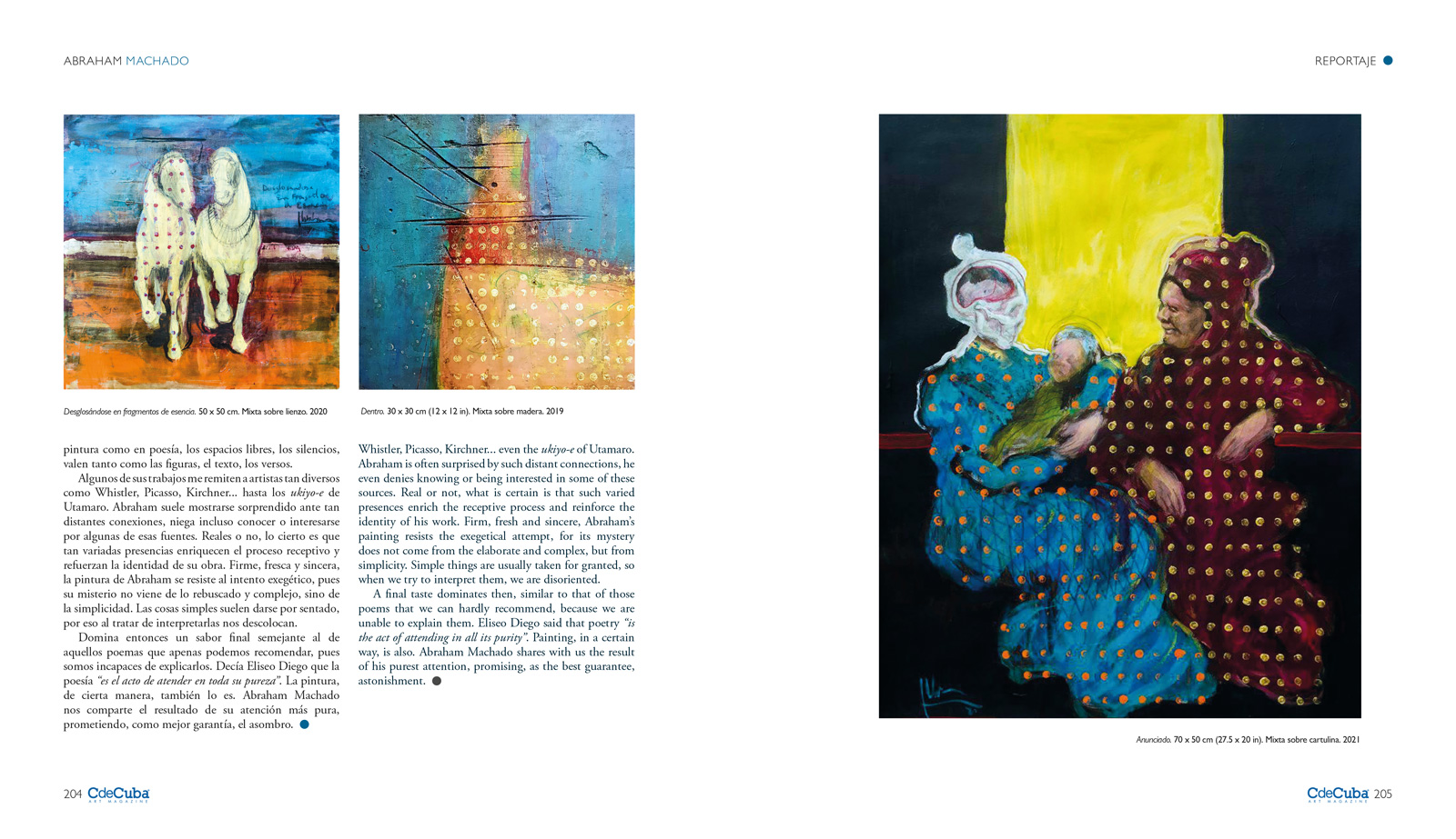 A final taste dominates then, similar to that of those poems that we can hardly recommend, because we are unable to explain them. Eliseo Diego said that poetry “is the act of attending in all its purity”. Painting, in a certain way, is also. Abraham Machado shares with us the result of his purest attention, promising, as the best guarantee, astonishment.