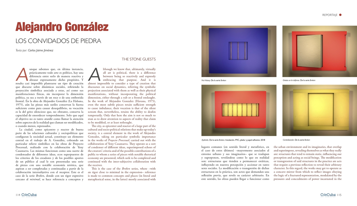 Although we know that, ultimately, virtually all art is political, there is a difference between being so reactively and expressly embracing that purpose. And it is almost impossible to consider a type of creation that discourses on social dynamics, referring the symbolic projection associated with them as well as their physical manifestations, without incorporating the political dimension, either through a rub or a frontal onslaught. In the work of Alejandro Gonzalez (Havana, 1975), even the most subtle pieces retain sufficient strength to cause imbalance, their vocation is that of the silent scream that, nevertheless, retains the ability to deafen temporarily. Only that here the aim is not so much to stun as to draw attention to aspects of reality that claim to be modified, or at least rethought.