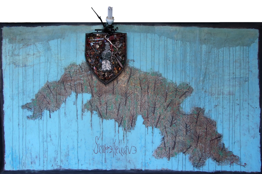 Ángel Ramírez, born in Havana in 1954, stands out as one of the most innovative contemporary Cuban artists. His work is characterized by the creation of a complex web of visual languages that reach a remarkable poetic depth. Through conceptual metaphors, Ramírez manages to combine technical mastery and creative agility, allowing for a fluid transition between painting, engraving (particularly woodcut) and sculpture, without compromising the essence of its contents.
