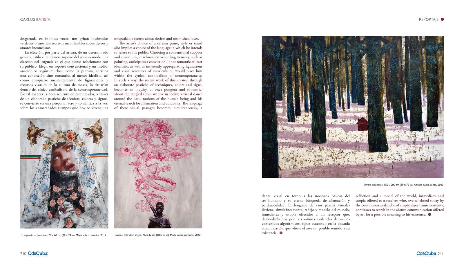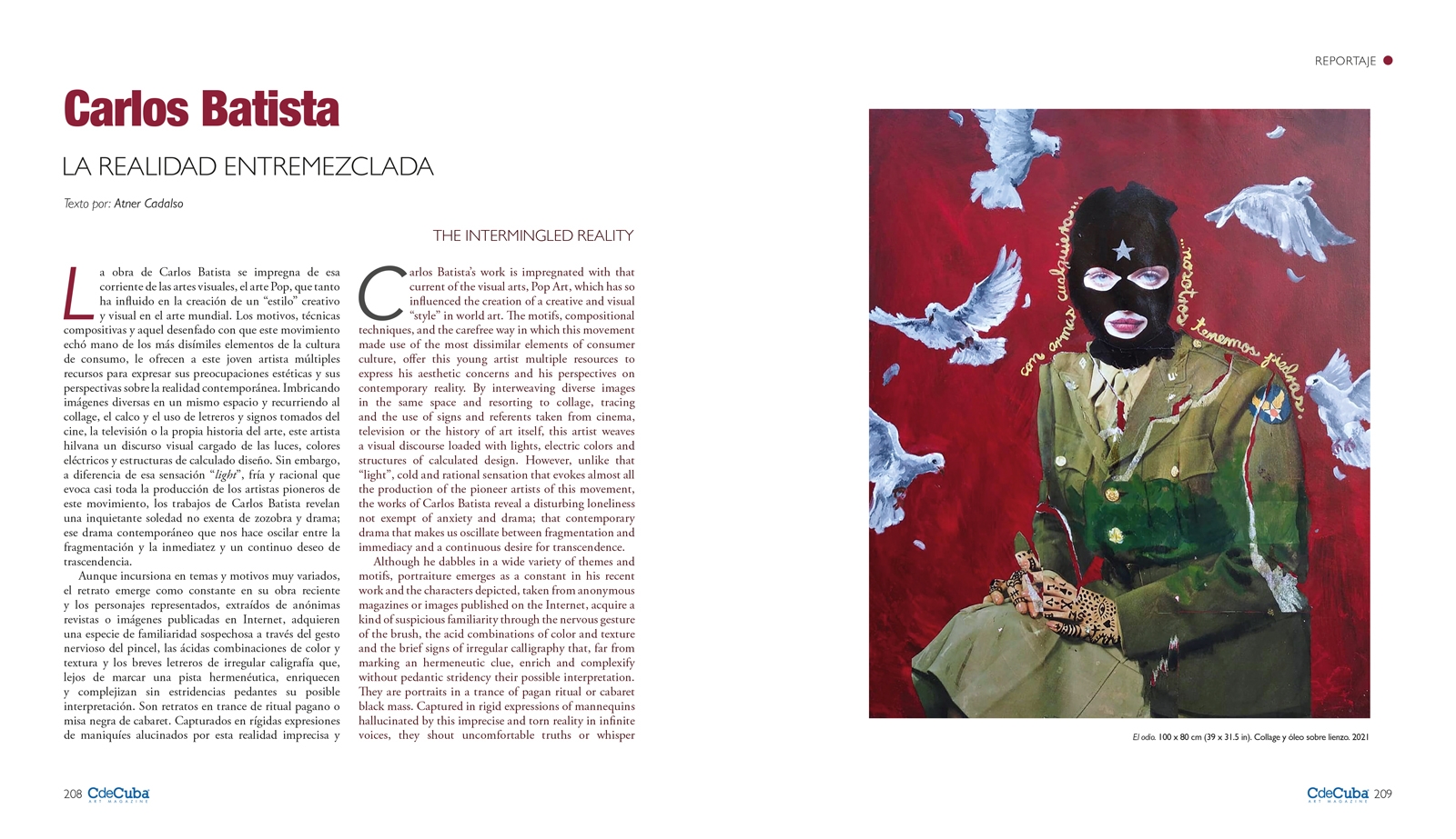 Carlos Batista’s work is impregnated with that current of the visual arts, Pop Art, which has so influenced the creation of a creative and visual “style” in world art. The motifs, compositional techniques, and the carefree way in which this movement made use of the most dissimilar elements of consumer culture, offer this young artist multiple resources to express his aesthetic concerns and his perspectives on contemporary reality. By interweaving diverse images in the same space and resorting to collage, tracing and the use of signs and referents taken from cinema, television or the history of art itself, this artist weaves a visual discourse loaded with lights, electric colors and structures of calculated design. However, unlike that “light”, cold and rational sensation that evokes almost all the production of the pioneer artists of this movement, the works of Carlos Batista reveal a disturbing loneliness not exempt of anxiety and drama; that contemporary drama that makes us oscillate between fragmentation and immediacy and a continuous desire for transcendence.