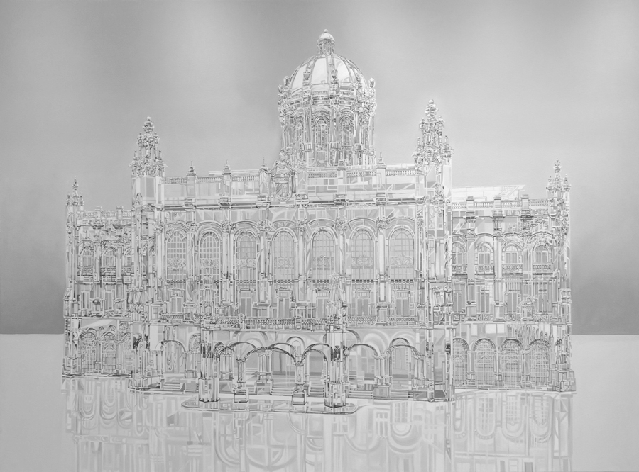 The uninhabited, translucent, phantasmagoric city… This is the city that multiplies and underlies Donis Llago’s work. To discover it absent can suggest a fortuitous encounter with the evils that afflict it, that submerge it in the depths of a glass box, that fracture it and torment it again and again, until it is left to die.