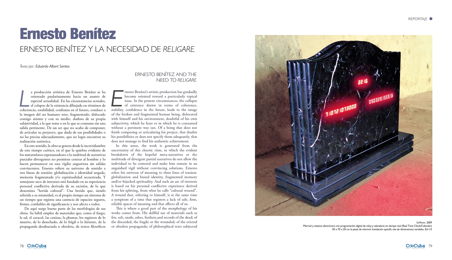 Ernesto Benítez’s artistic production has gradually become oriented toward a particularly topical issue. In the present circumstances, the collapse of existence drawn in terms of coherence, stability, confidence in the future, leads to the image of the broken and fragmented human being, dislocated with himself and his environment, doubtful of his own subjectivity, which he fears or in which he is consumed without a pertinent way out. Of a being that does not finish composing or articulating his project, that doubts his possibilities or does not specify them adequately, that does not manage to find his authentic achievement.