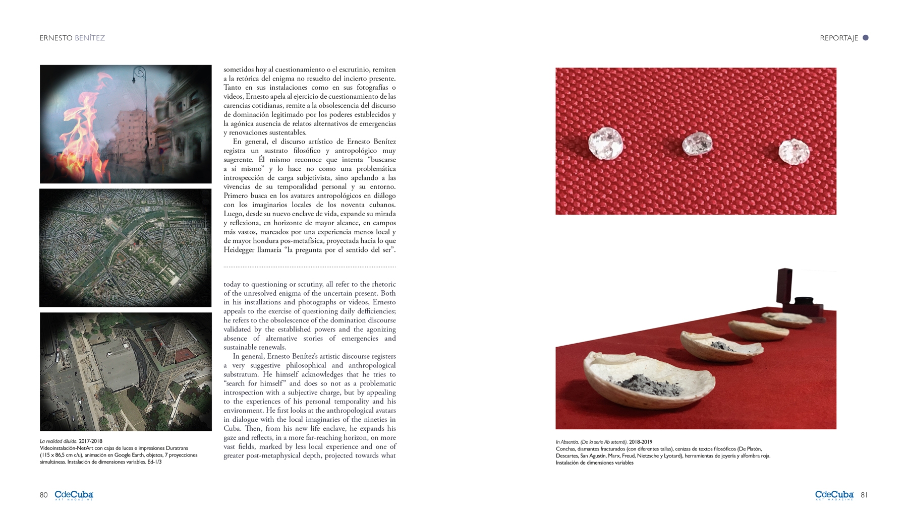 In general, Ernesto Benítez’s artistic discourse registers a very suggestive philosophical and anthropological substratum. He himself acknowledges that he tries to “search for himself” and does so not as a problematic introspection with a subjective charge, but by appealing to the experiences of his personal temporality and his environment. He first looks at the anthropological avatars in dialogue with the local imaginaries of the nineties in Cuba. Then, from his new life enclave, he expands his gaze and reflects, in a more far-reaching horizon, on more vast fields, marked by less local experience and one of greater post-metaphysical depth, projected towards what Heidegger would call “the question of the meaning of being”. For that reason, in his most recent works, he would seem to be insistently questioning himself about the Dasein, about existence as project, as reality that is not made, that is not present but looked for and constructed, and turns the world into his existence, granting it meaning with regard to our lives and our aims. And he questions how, in the present state of affairs, in midst of an existential crisis so much in lack of reliable support, one can be “‘chosen’, conquered, or lost, or not conquered at all”.