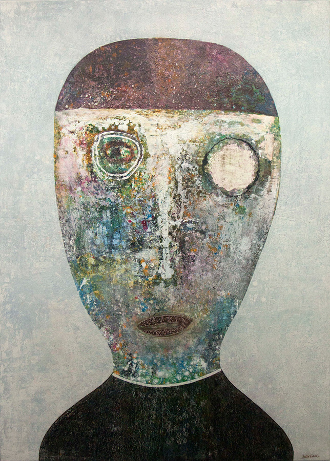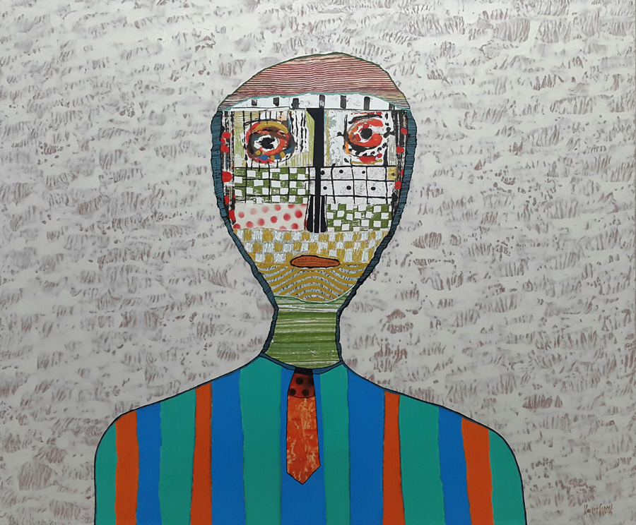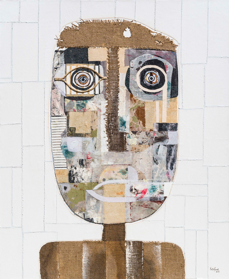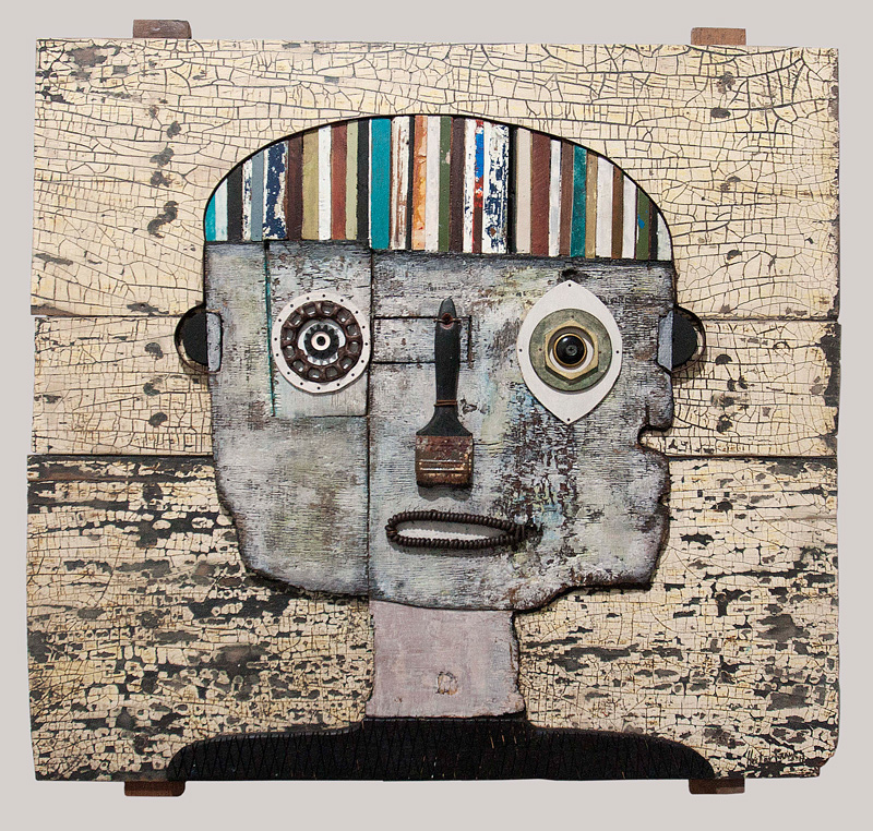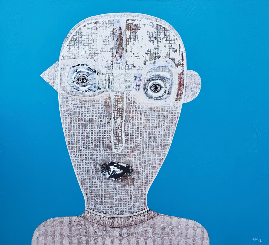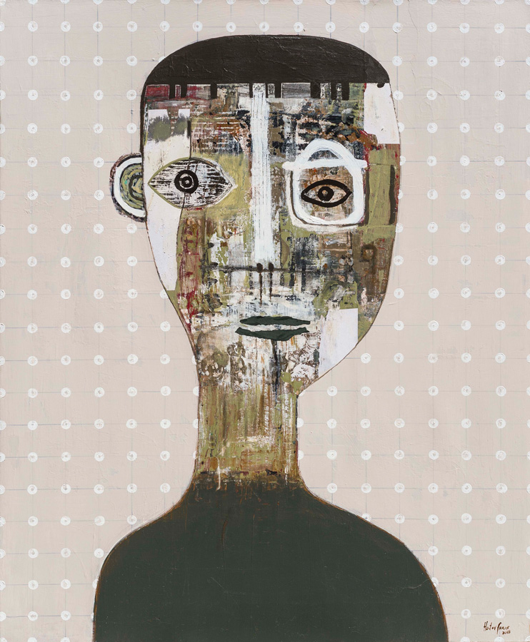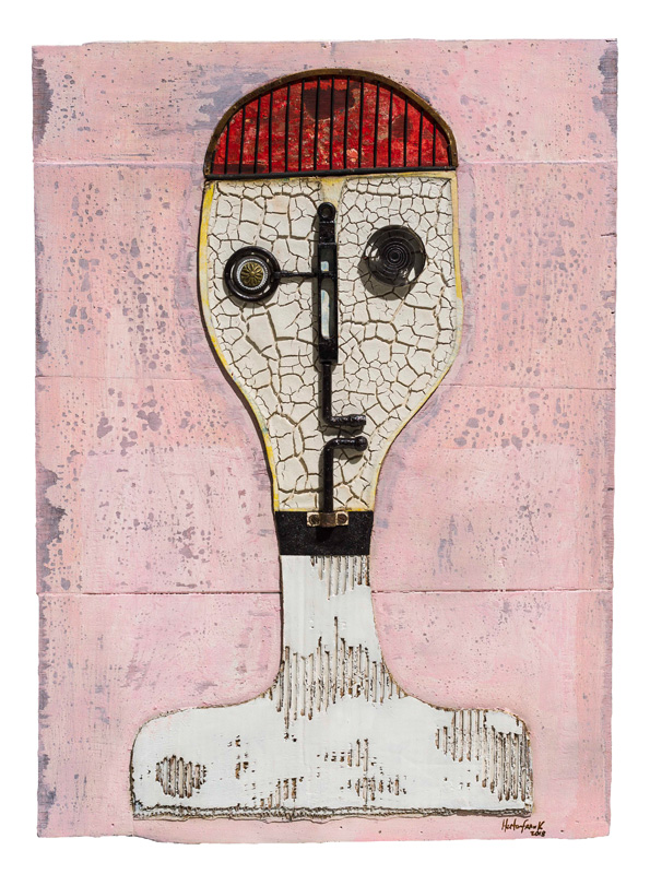 Héctor Frank’s works are based on a central anthropomorphic image. Thematic elements, found objects and colored planes that do not achieve perspective are added to it. They are severe faces, which are astonished to be observed. Characters contained in an orb of textures and colors from which they do not want to escape. He traps, shapes, does not dissect. More than works in themselves, they are works for themselves, with a great individual conscience, that do not try to represent, symbolize, suggest or allude. They just want to be.