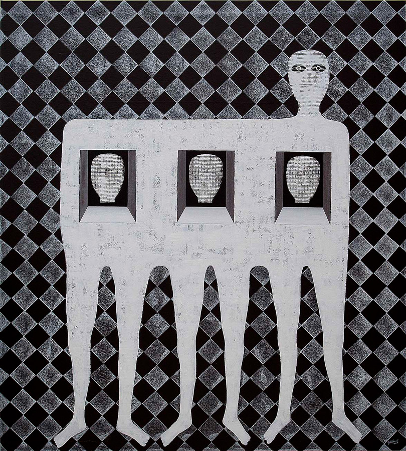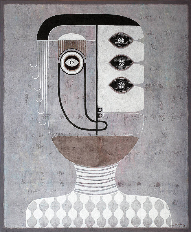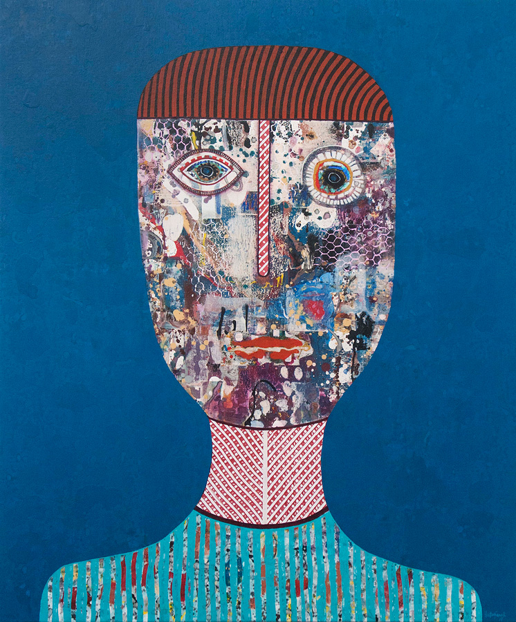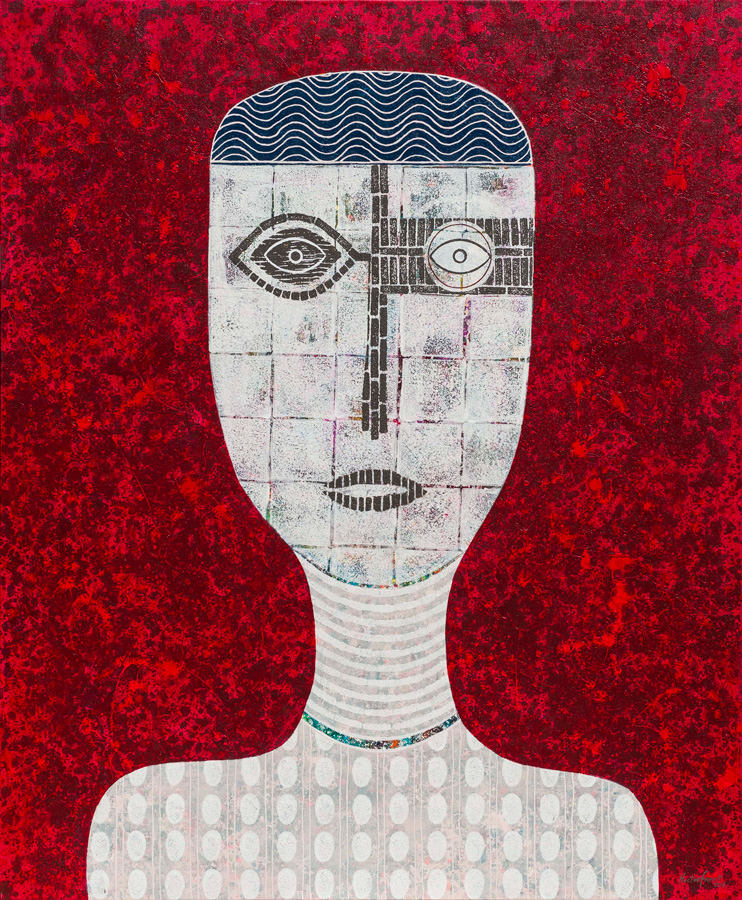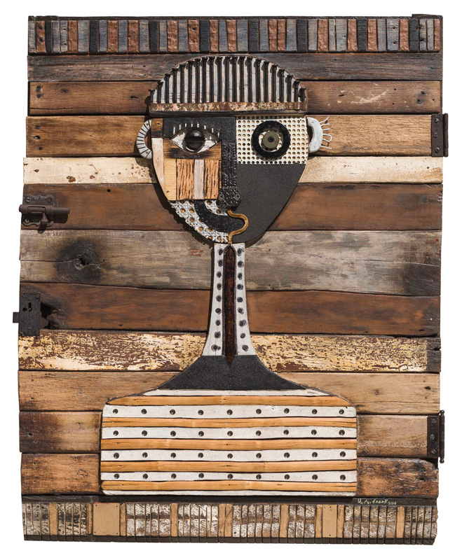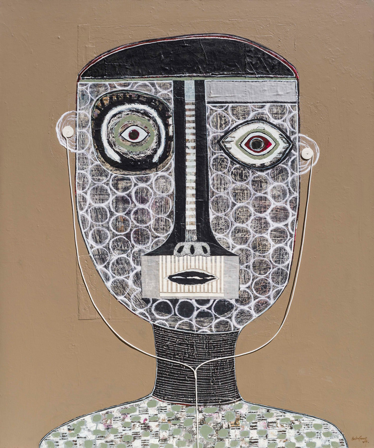 Héctor Frank’s works are based on a central anthropomorphic image. Thematic elements, found objects and colored planes that do not achieve perspective are added to it. They are severe faces, which are astonished to be observed. Characters contained in an orb of textures and colors from which they do not want to escape. He traps, shapes, does not dissect. More than works in themselves, they are works for themselves, with a great individual conscience, that do not try to represent, symbolize, suggest or allude. They just want to be.