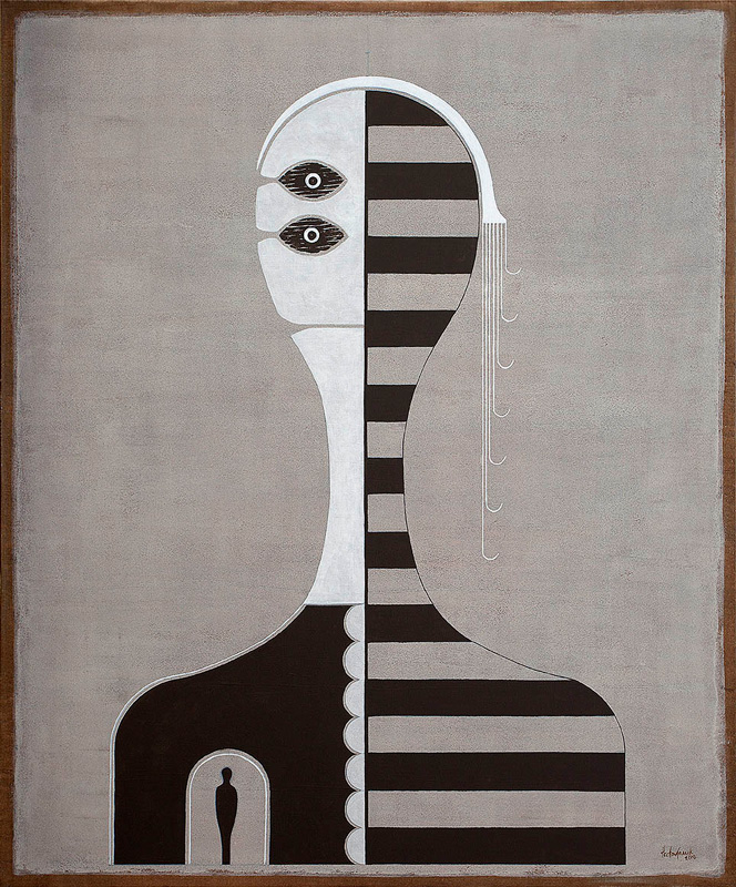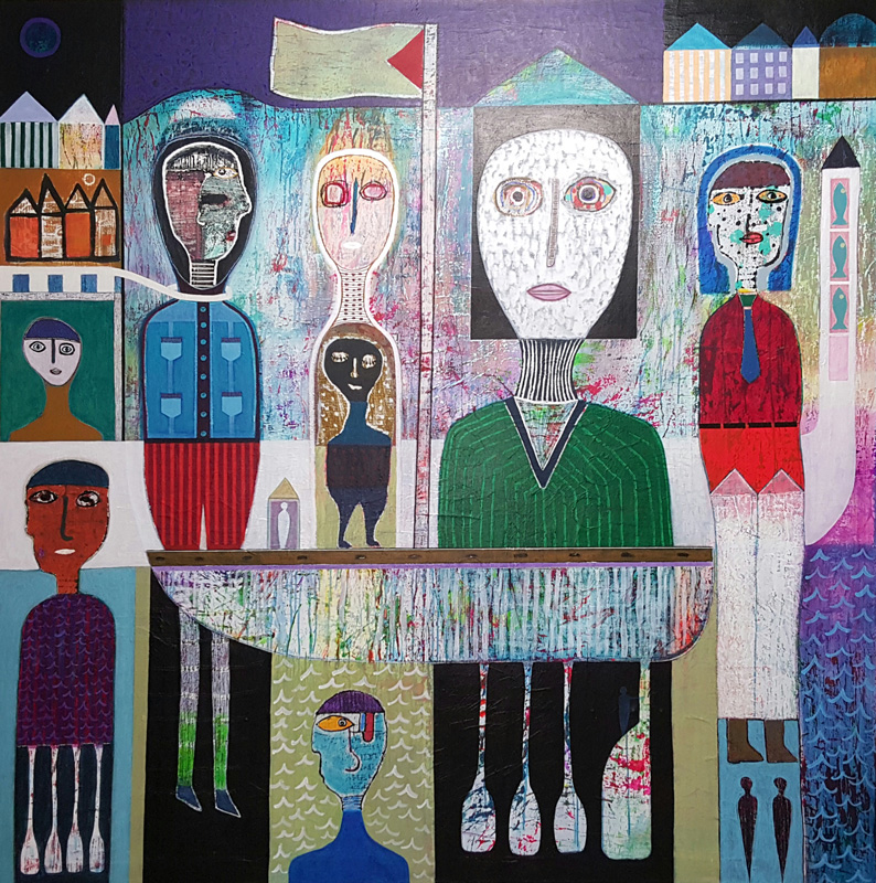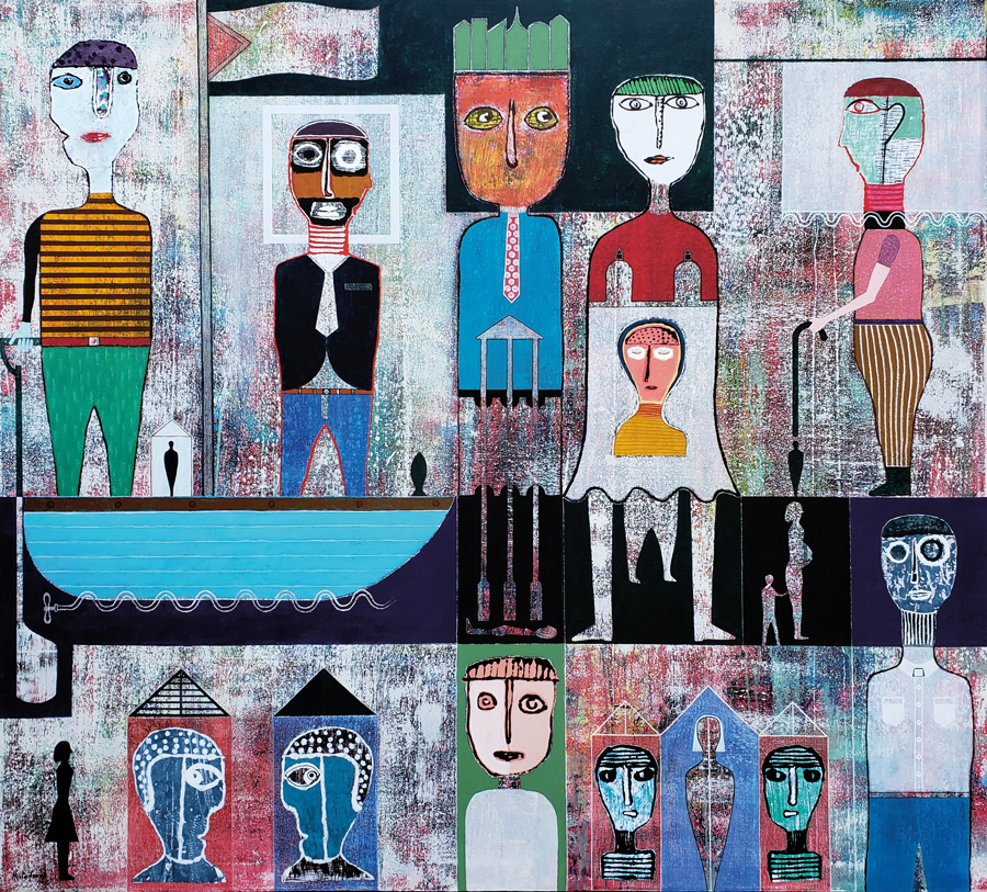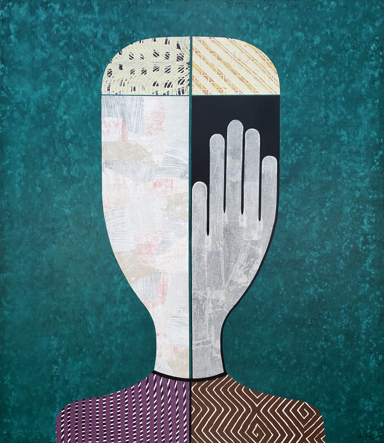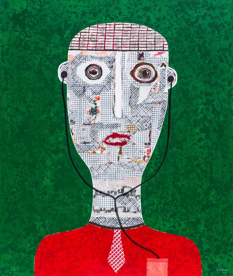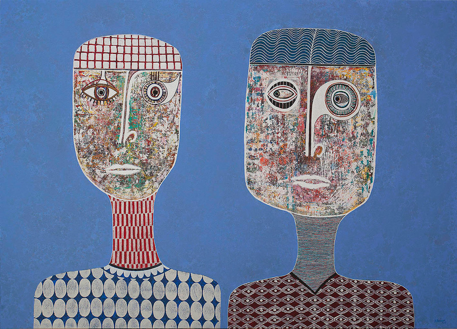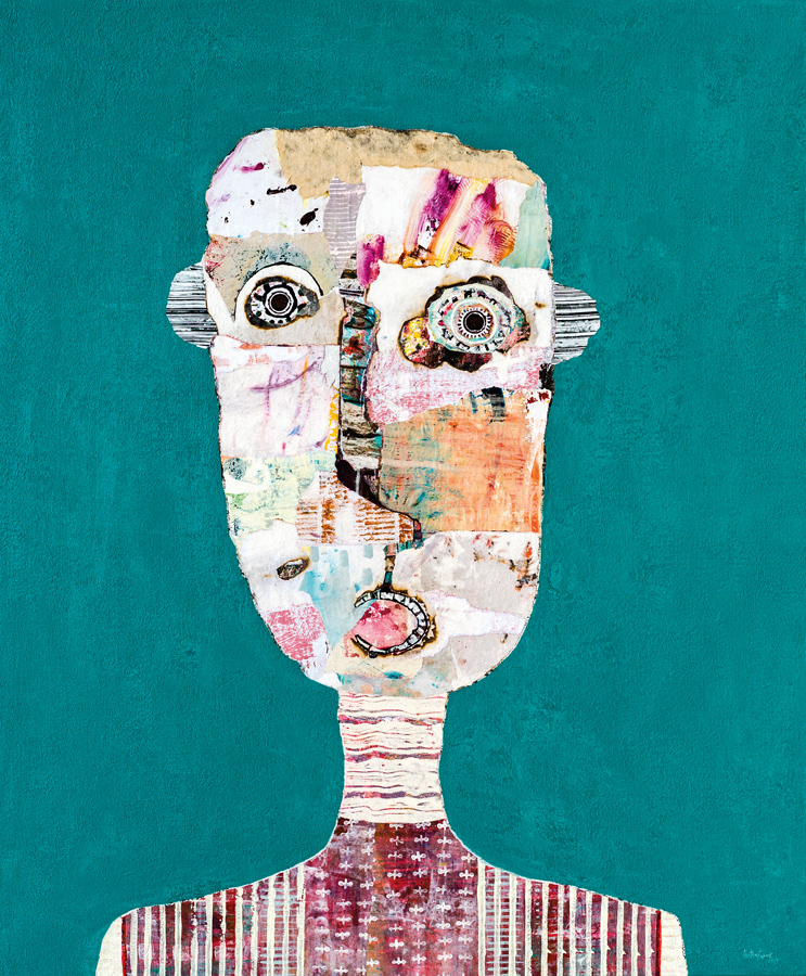 Héctor Frank’s works are based on a central anthropomorphic image. Thematic elements, found objects and colored planes that do not achieve perspective are added to it. They are severe faces, which are astonished to be observed. Characters contained in an orb of textures and colors from which they do not want to escape. He traps, shapes, does not dissect. More than works in themselves, they are works for themselves, with a great individual conscience, that do not try to represent, symbolize, suggest or allude. They just want to be.