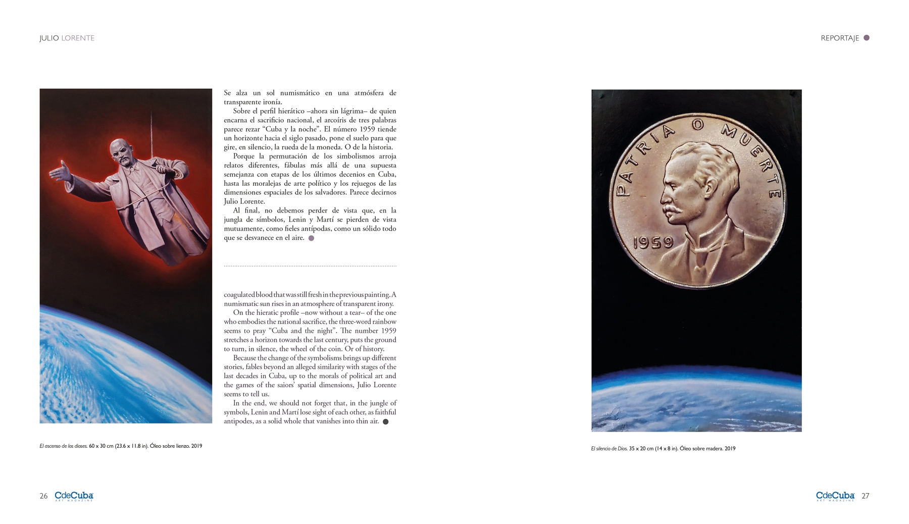 “My work is the symbolic translation of my critical thinking,” says Julio Lorente just as Havana, which claims to be Cuba, celebrates half a millennium since its founding and completes 60 years of the revolutionary triumph of 1959, and all the ingredients of reality reach a critical mass of thought.