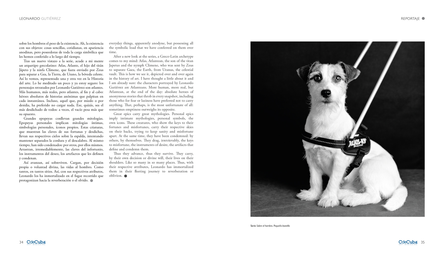After a new look at the series, a Greco-Latin archetype comes to my mind: Atlas, Atlantean, the son of the titan Japetus and the nymph Climene, who was sent by Zeus to separate Gaea, the Earth, from Uranus, the celestial vault. This is how we see it, depicted over and over again in the history of art. I have thought a little about it and I am already sure: the characters portrayed by Leonardo Gutiérrez are Atlanteans. More human, more real, but Atlantean, at the end of the day: absolute heroes of anonymous stories that throb in every snapshot, including those who for fear or laziness have preferred not to carry anything. That, perhaps, is the most unfortunate of all: sometimes emptiness outweighs its opposite.