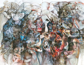 Everything that happens to the spectator when he or she stands in front of his works, sometimes in large format, is ruled by a profound subtlety that allows the viewer to notice some details that escape him or her in the real world. Virgilio Piñera’s cursed tide and José Lezama Lima’s bewitched tide commune on the same stage, making it contradictory and at the same time rich in essential substances.