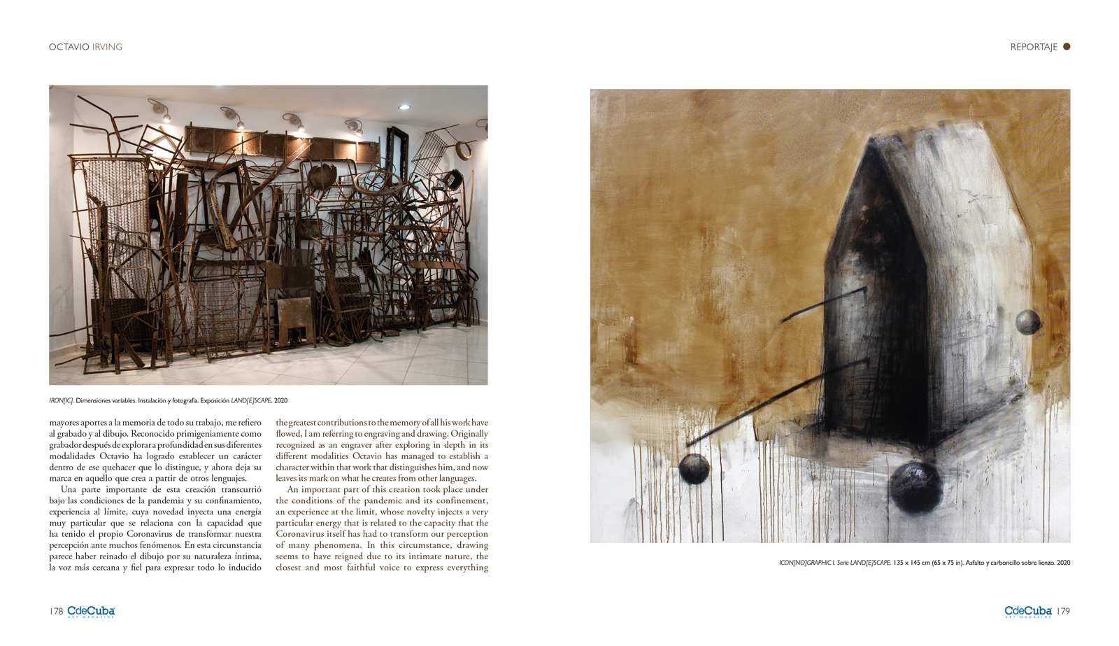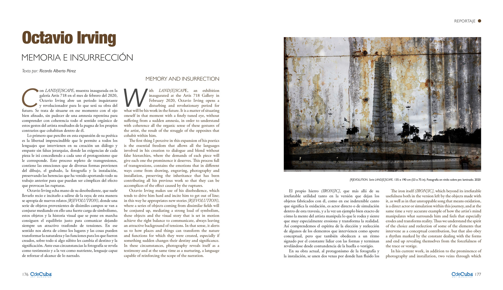 With LAND[E]SCAPE, an exhibition inaugurated at the Artis 718 Gallery in February 2020, Octavio Irving opens a disturbing and revolutionary period for what will be his work in the future. It is a matter of situating oneself in that moment with a finely tuned eye, without suffering from a sudden amnesia, in order to understand with coherence all the organic sense of these gestures of the artist, the result of the struggle of the opposites that cohabit within him.