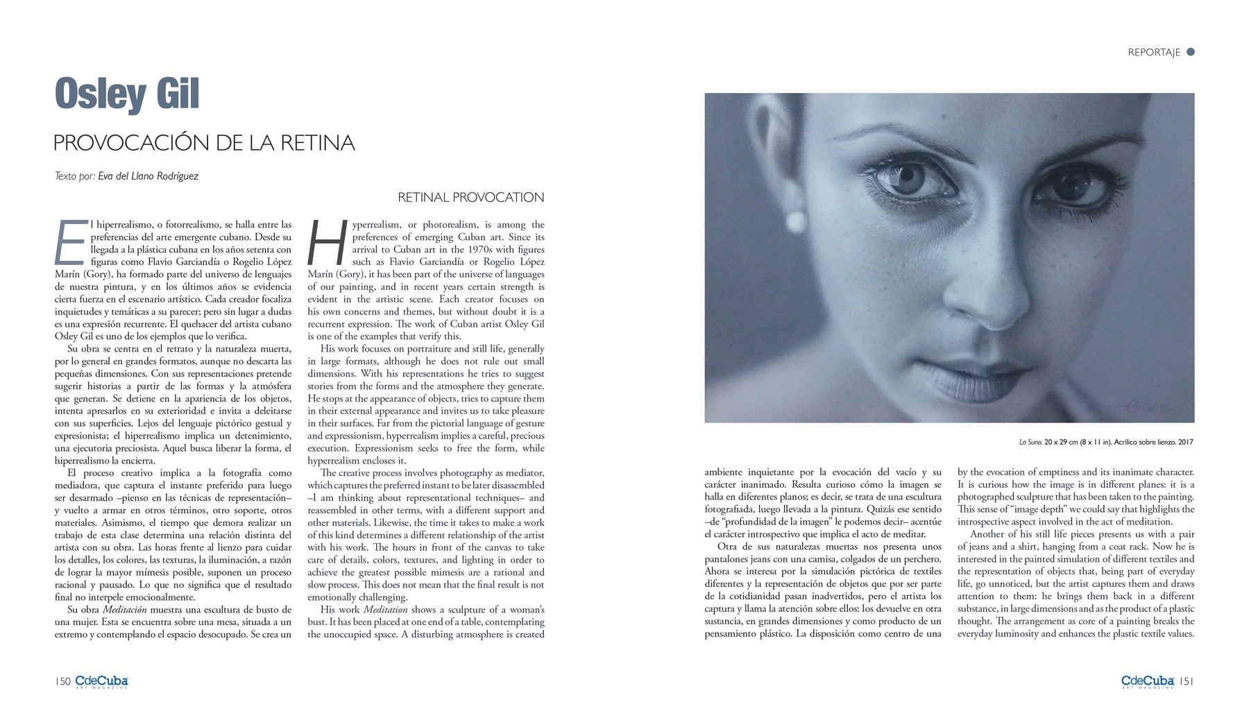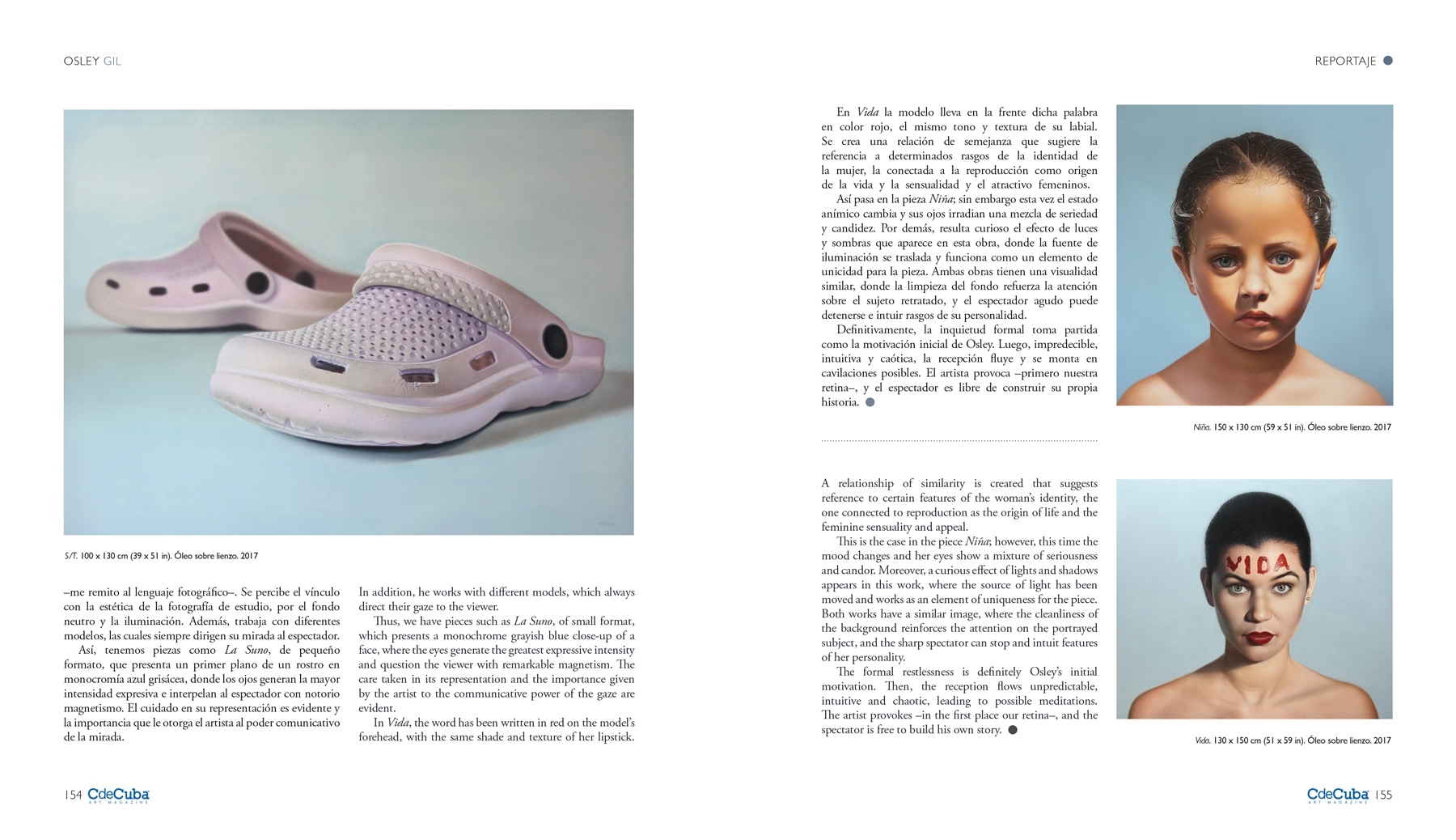 Hyperrealism, or photorealism, is among the preferences of emerging Cuban art. Since its arrival to Cuban art in the 1970s with figures such as Flavio Garciandía or Rogelio López Marín (Gory), it has been part of the universe of languages of our painting, and in recent years certain strength is evident in the artistic scene. Each creator focuses on his own concerns and themes, but without doubt it is a recurrent expression. The work of Cuban artist Osley Gil is one of the examples that verify this.
