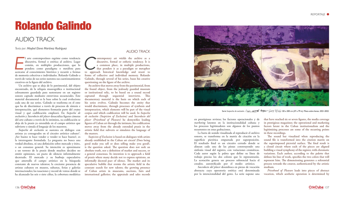 Suspicion of Exclusion is based on dialogues with artists already established in the Cuban art circuit. Being good makes you sell or selling makes you good, is the question asked. The question does not seek an absolute truth, nor a definition of market and success, or a general consensus. Its intention is to approach a field of praxis where many decide not to express opinions, an informally decreed pact of silence. The market and its speculative bubble that storms the artistic field in the constant search for new talents; the growing presence of Cuban artists in museums, auctions, fairs and international galleries; the appraisals and sales records that have reached six or seven figures, the media coverage in prestigious magazines; the operational and marketing factors latent in the Cuban institutionalism and the legitimizing processes are some of the recurring points in these recordings.