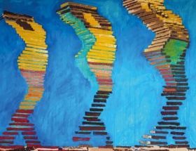 If it is a question of logos, then the artist deifies his planimetry in watercolors on cardboard that recall architectures and constructions, some of them labyrinthine, spatial, by also endowing them with a certain contemporary monumentalism, which denotes his skillful handling of the conventional instruments of drawing in sets assisted by formal synthesis. This marked plurality reveals a creator who is unprejudiced about the forms that his proposals must acquire regardless of the nature or qualification of the materials used. Anything goes, he seems to say, to move his ideas in any direction, including sculpture.