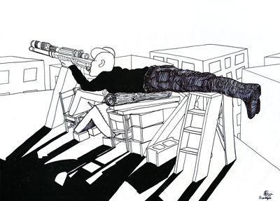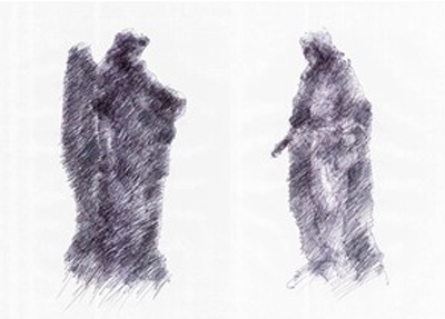 Harold Ramírez homenajea a los fallecidos, dibujando desde el mismo escenario, se introduce en la biografía de seres que dejaron de existir físicamente.